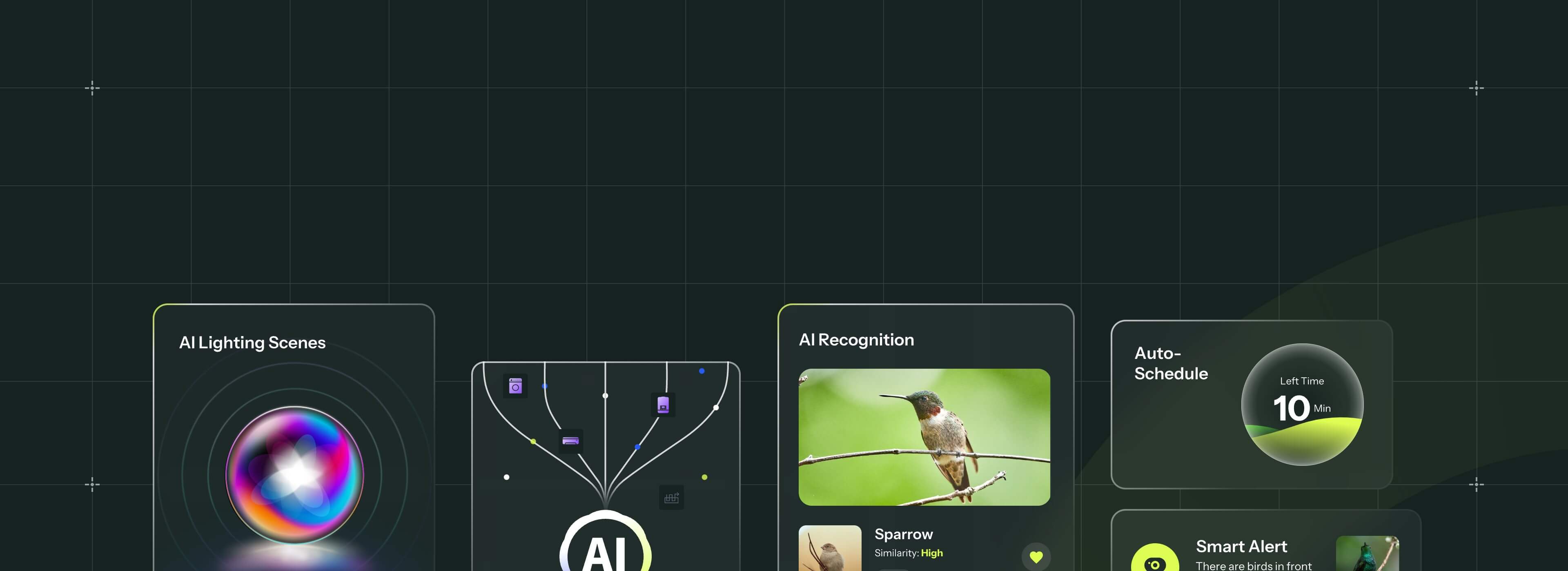 Turn your backyard into a natural live show. Our Birding AI recognizes 10,000+ bird species (including 300+ humming bird species) in real time, capturing photos automatically and sending instant alerts to your phone.